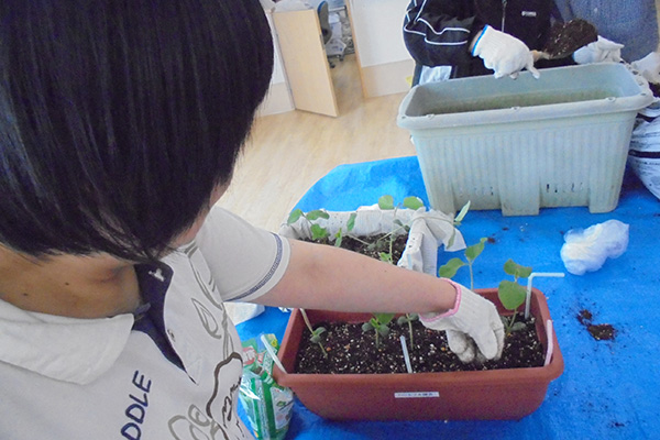 曜日ごとに、創作や紙すき、園芸、運動など様々な活動をしています。楽しさや達成感を感じていただけるよう、一人一人に合わせた活動を工夫しています。