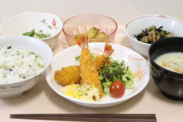 管理栄養士が立てた献立で栄養バランスの取れた食事を提供いたします。きざみ食やペースト食などの食事形態やアレルギーにも対応しています。