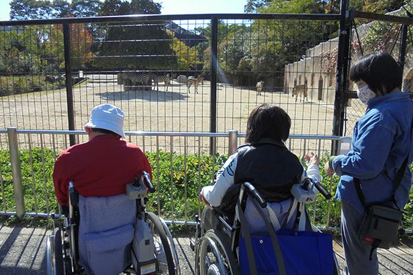 年に一度、スタッフの付き添いのもと、動物園や植物園、買い物など、様々なところへ出かける活動を行っています。一人一人の希望に沿えるよう少人数のグループで外出しています。